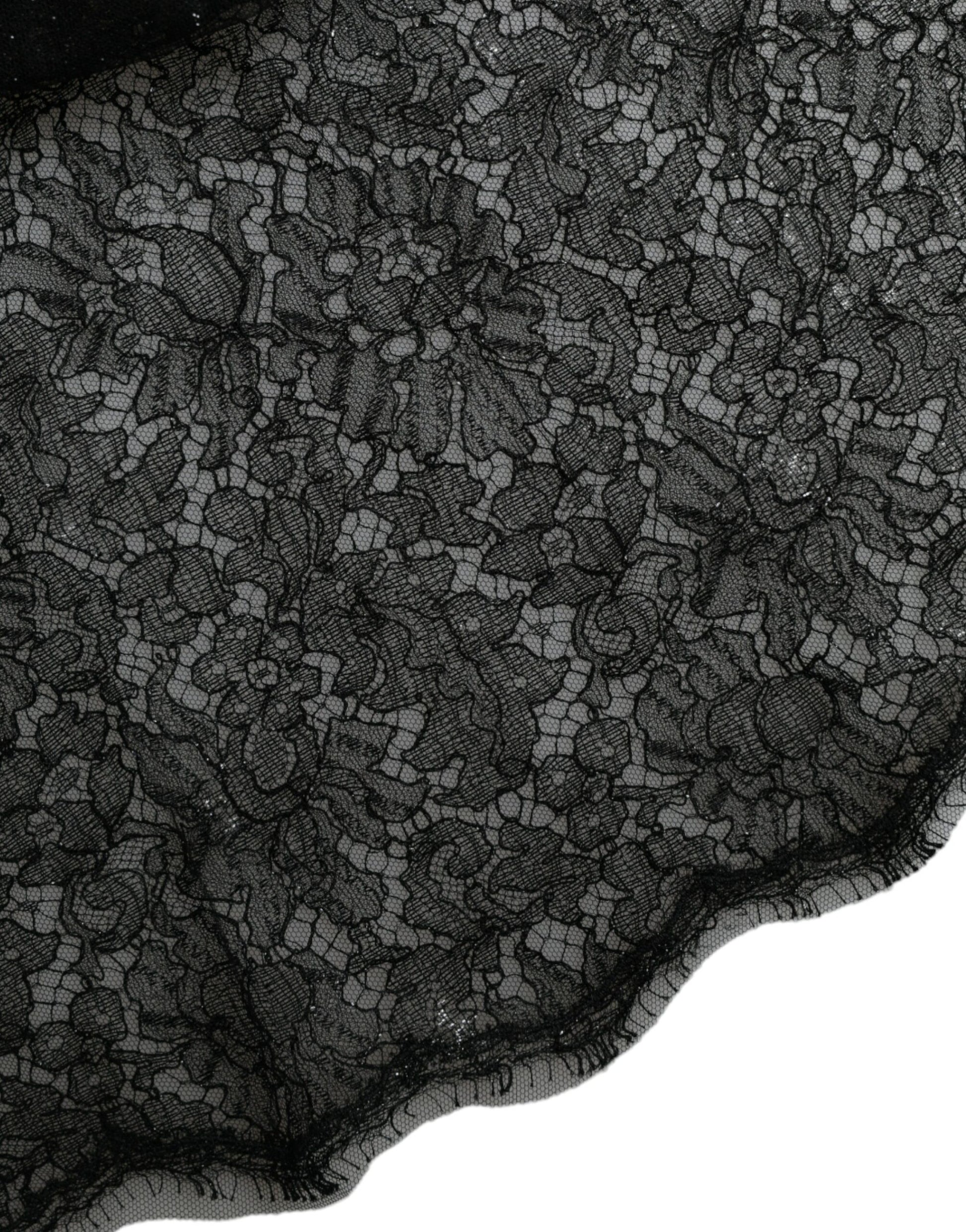 Dolce & Gabbana Black Floral Lace Sheer A-line Midi Dress