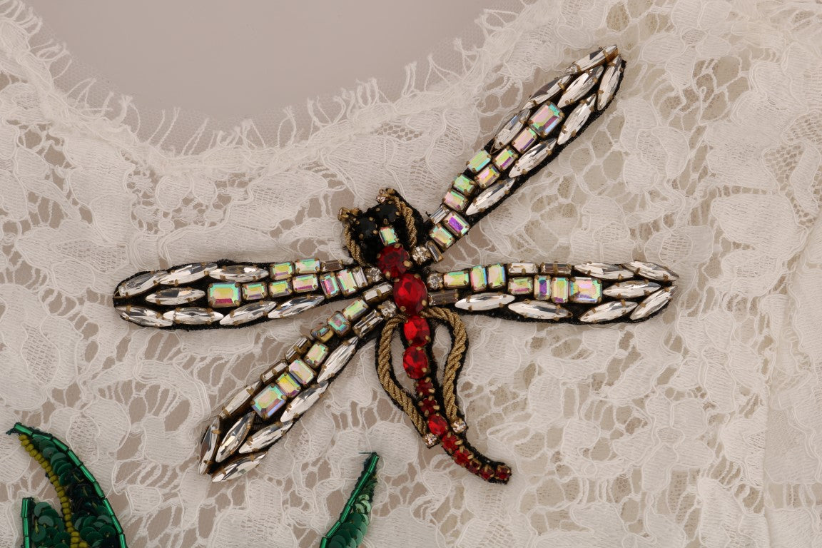 Dolce & Gabbana White Crystal Embellished Lace Blouse