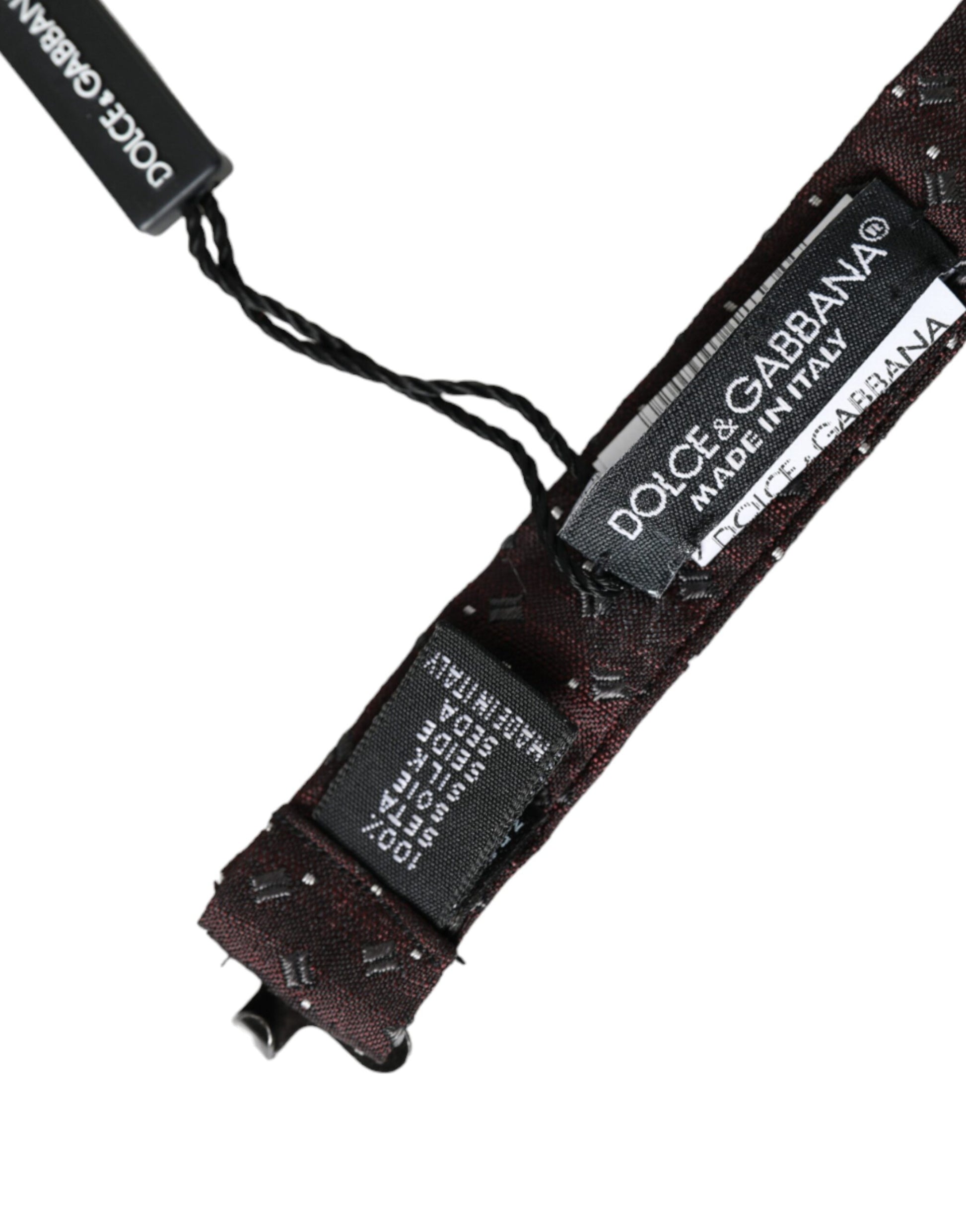 Dolce & Gabbana Maroon Silk Patterned Adjustable Neck Papillon Bow Tie
