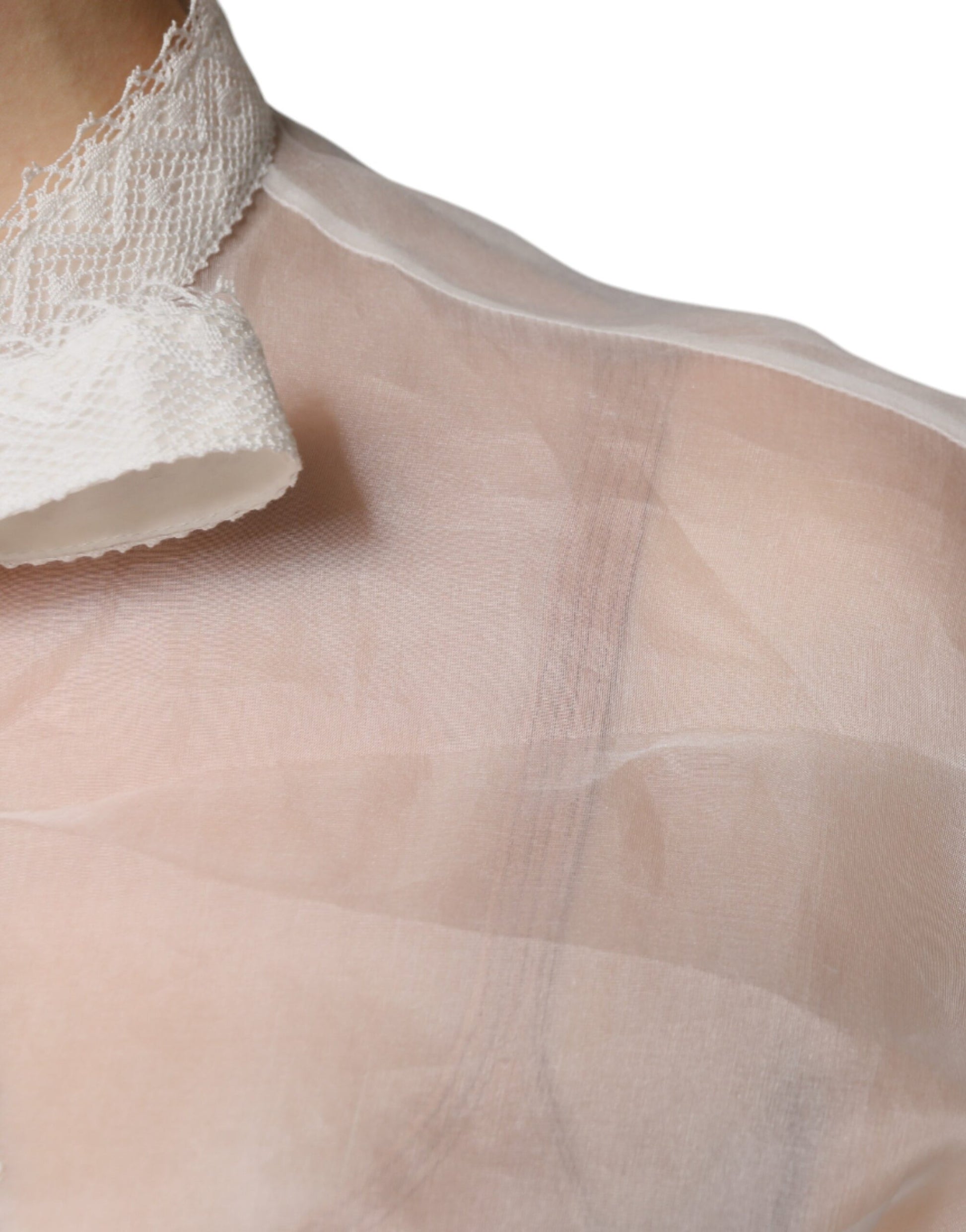 Dolce & Gabbana White Ascot Collar Long Sleeves Blouse Top